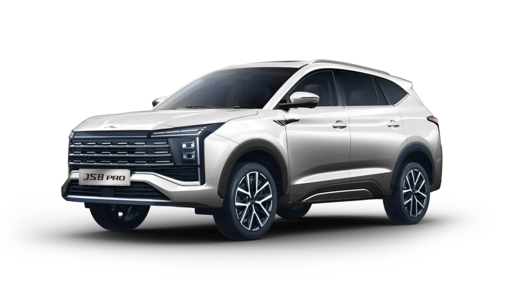 JS8 Pro to połączenie elegancji, mocy i nowoczesnego stylu. Dynamiczna sylwetka, starannie dopracowane detale i prestiżowy charakter sprawiają, że sprawdzi się zarówno jako auto rodzinne, jak i reprezentacyjny samochód firmowy.